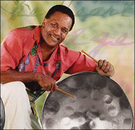 Arranger, composer, steel drum and recording artist Robert Greenidge. Raised on the sounds of the steel drum on the island of Trinidad, Robert Greenidge has become one of the pre-eminent pan players in the world. Whether he's performing solo, with Michael Utley in Club Trini, accompanying Jimmy Buffett or with the Desperados, Greenidge's mastery of the pan continues to capture the imagination of fans throughout the world.